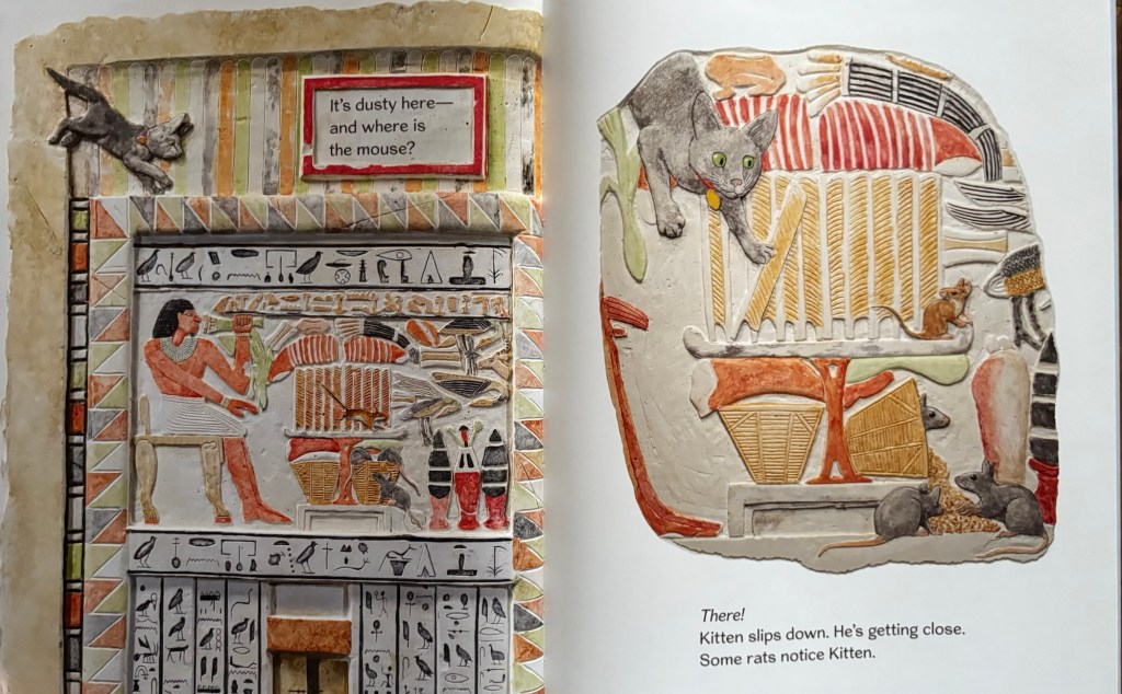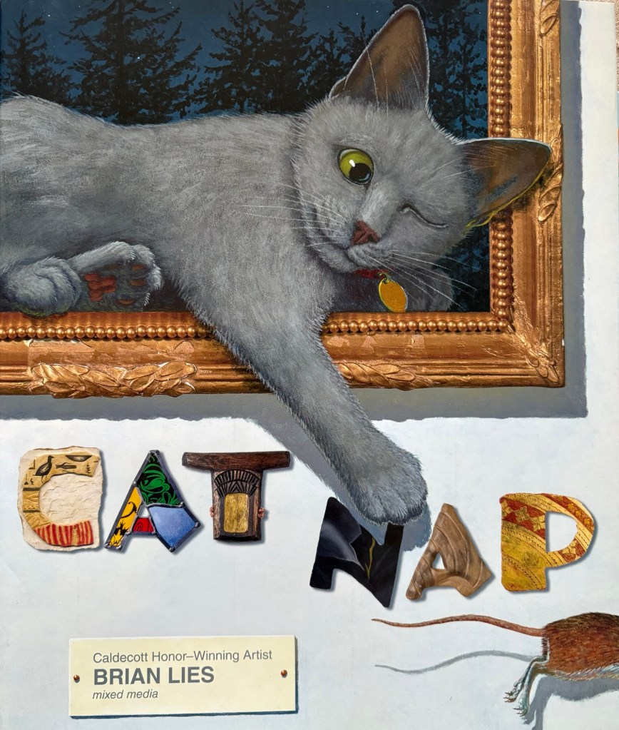 His latest masterpiece, Cat Nap. The story is somehow simple: in the quiet setting of an art museum, a brave or hungry enough mouse disturb the house cat’s siesta. What is follows? An explosion of colour and forms, of mixed media and art, a pure joy. Enjoy!