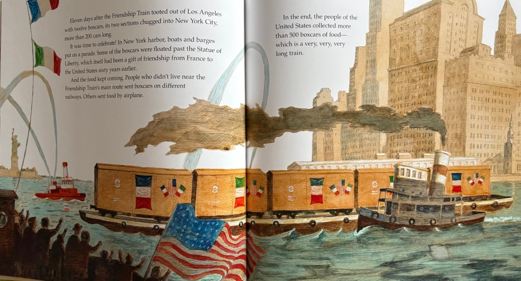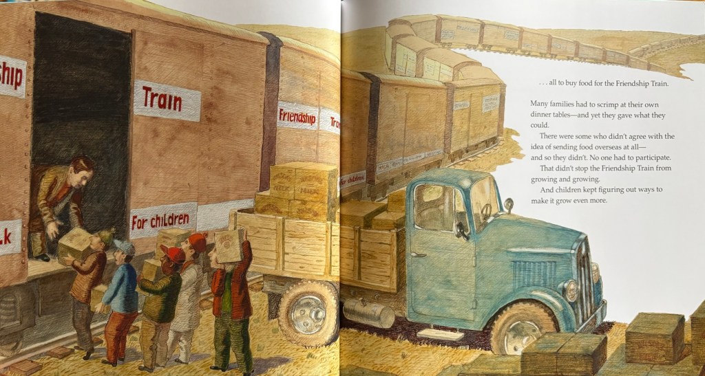 Winter was coming in Europe, after the World War II left only ruins and hunger in so many countries. In America, people was asking “How can we help?” And they did. They manage to collect food and clothes and toys for the children in Europe. The Friendship Train ran from the West Coast to the East, bringing along 50 wagons! Children all over America brought toys and books and clothes; they sold newspaper and donated their allowences to raise money and food for Europe’s children.