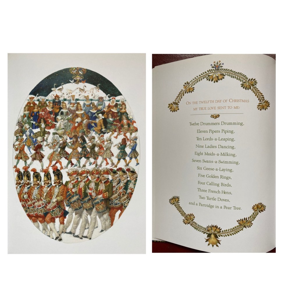 The book, called The Twelve Days of Christmas, was published in 2009 by Marshall Cavendish Corporation. The illustrations are so beautiful, is like looking at a paiting on each of the book’s page. The details, fine lines and colors are so lively and so gorgeous that it was a feast for the eye and soul to read this book.