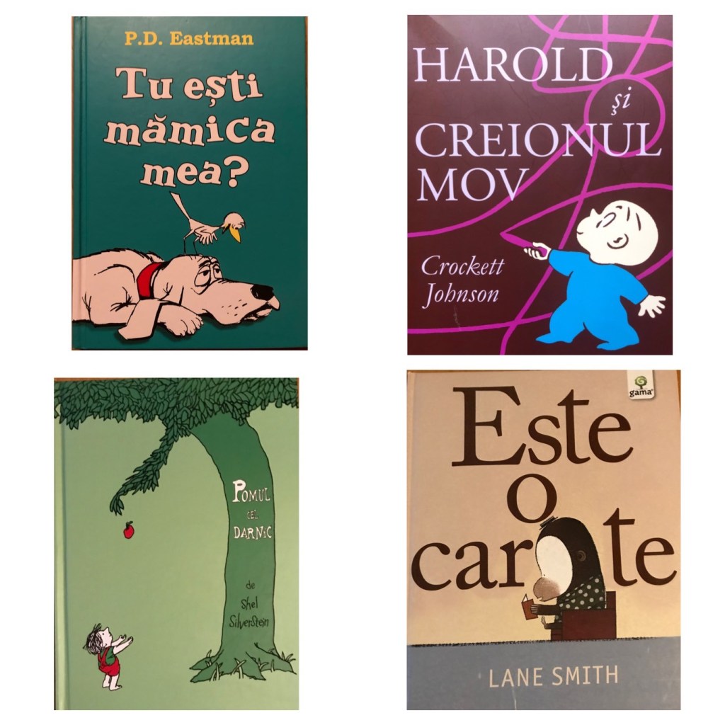 I selected a small collection of books that are suitable for first reading alone. Some are in english, some are translated in Romanian, but the originals is the same in terms of illustrations and text.
