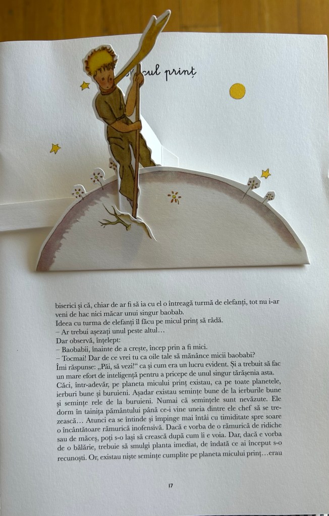 Cateva imagini din editia Pop-up aparuta la editura Rao si cateva din exemplarul meu de colectie, aparut la Gallimard in 1946. Mandria mea si a bibliotecii familiei. Pe care nu as fi avut-o daca cineva drag nu ar fi avut grija de ea pana a ajuns la mine.