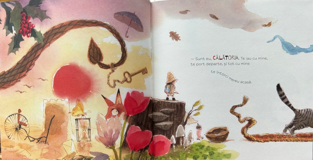 Recunosc, la momentul aparitiei, ceva m-a impiedicat sa cumpar cartea. Daca este prea mica? m-am gandit. Nu este 🙂 Este o carte pentru toate varstele, o carte al carui personaj principal este da, inca destul de mic incat incape tot in imbratisarea mamei sale. Dar asta nu inseamna ca nu este destul de curajos si dornic de cunoastere incat sa cutreiere lumea pentru a afla raspunsuri si adevaruri cautate.