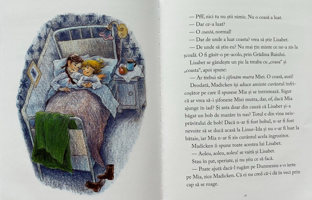 Poate cele mai indragite surori din literatura pentru copii sunt Madicken si Lisabet Nilsson, personajele portretizate desavarsit de Astrid Lindgren. “Lisabet si bobul de mazare”, aparuta recent la Cartea Copiilor, a devenit imediat una din cartile preferate ce descriu pataniile nazdravanelor surori ce traiesc in Junibacken. Junibacken este din 1989 si un parc tematic dedicat cartilor si povestilor magice scrise de celebra autoare si una dintre cele mai vizitate atractii turistice din Suedia. Astrid Lindgren s-a implicat foarte mult in realizarea si definitivarea conceptului acestui parc, pe care l-a imaginat ca un spatiu menit sa promoveze literatura si povestile pentru copii.
