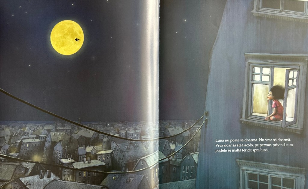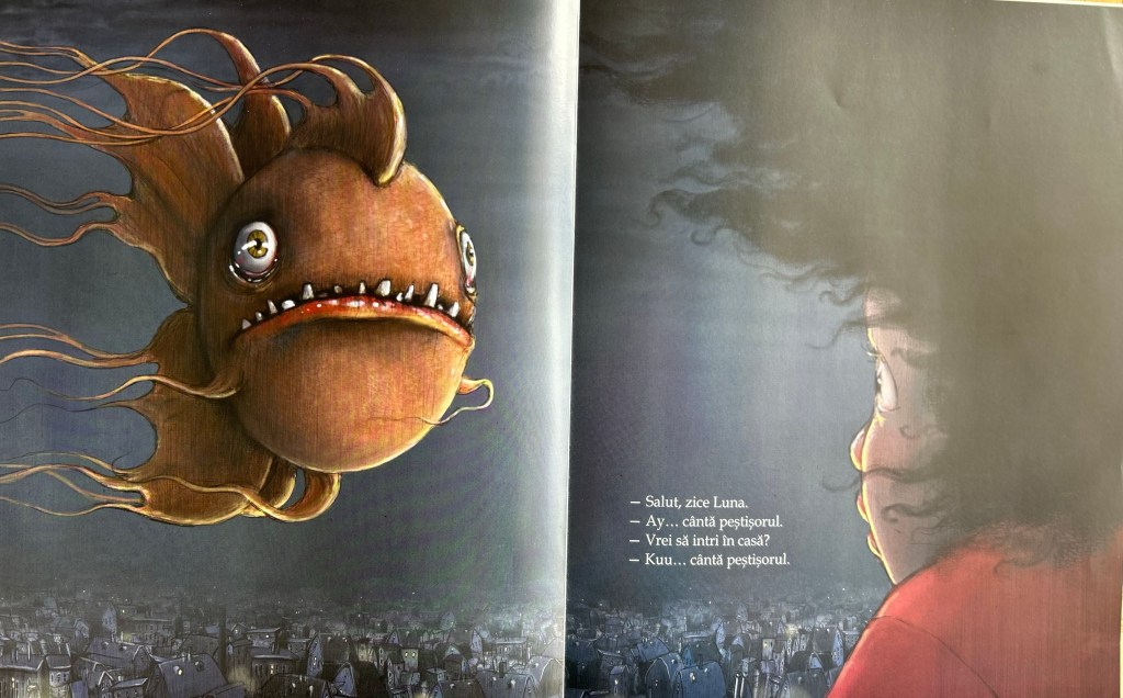 - Suprarealism si poezie. Alegerea autoarei de a folosi ca simbol un peste zburator adauga o nota de suprarealism povestii. Pestele zburator contrazice legile naturii si confera un pic de magie povestii. El este un mijloc de transportare pentru imaginatia, emotiile si transformările prin care trece personajul. Inoata din pagina in pagina, purtand-o pe Luna si pe noi cititorii deopotrivă, intr-o lume in care realitatea si fantasticul se imbina si se intrepatrund.