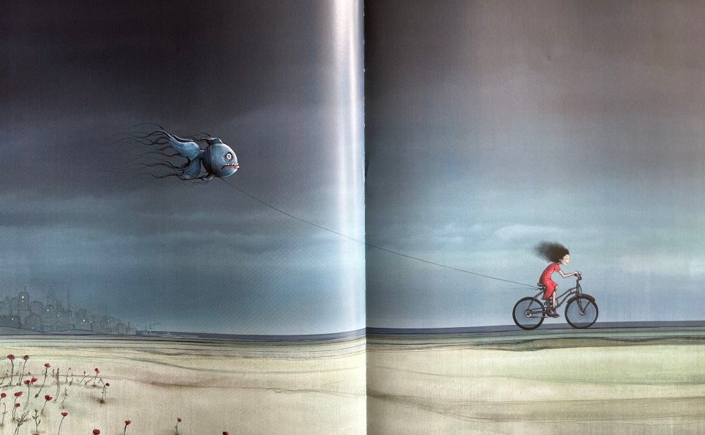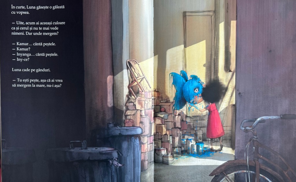 - Iese din tiparele normalitatii. Alegerea artistei de a se detasa de formele tradiționale de ilustratie, luminoase si vesele, provoaca aceasta “normalitate” considerată pentru lumea ilustratiei din literatura pentru copii. Imbratisand umbrele si ambiguitatea, acest du-te -vino in care nu stii daca un lucru este asa sau este exact invers. Ea ii incurajeaza pe cititori sa descopere si emotiile mai puternice, ascunse uneori in straturi mai profunde.