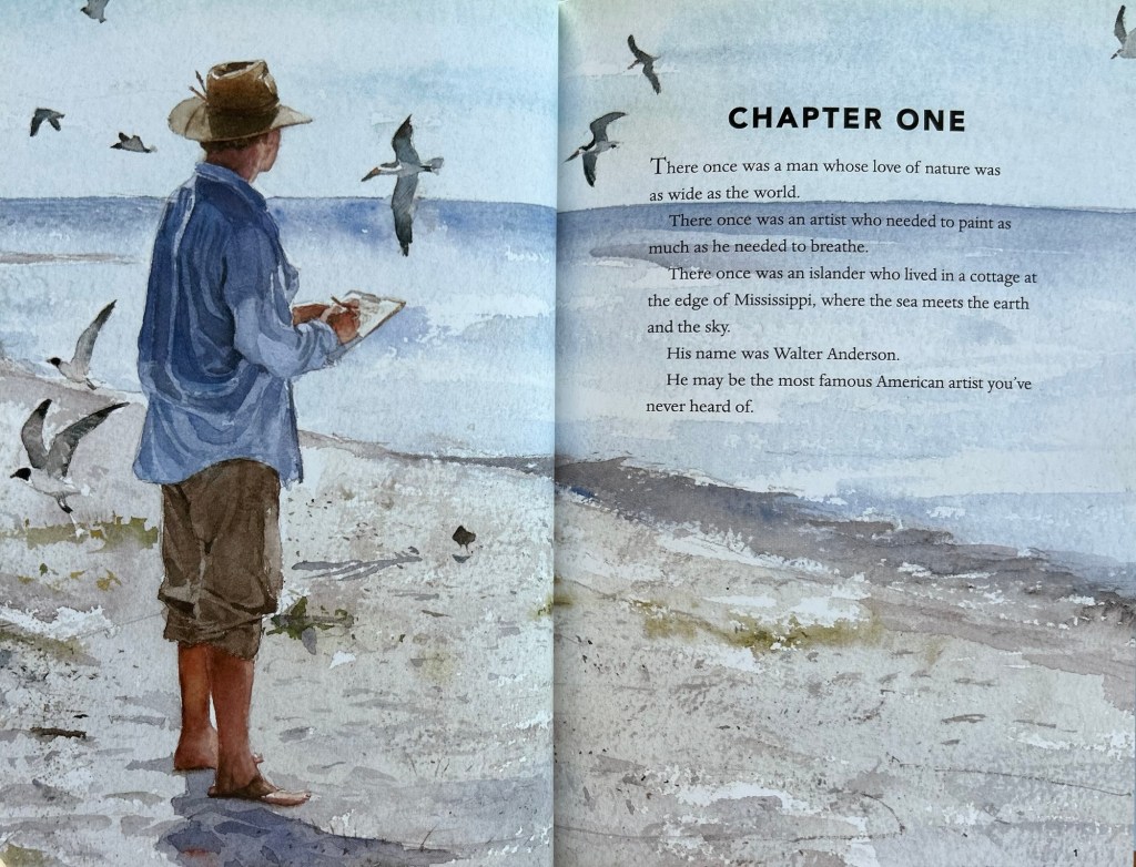 In a beautifully crafted biography, Hester Bass and Caldecott Honor winner E. B. Lewis pay homage to the most famous American artist you’ve never heard of 🙂 Reclusive nature-lover Walter Anderson spent weeks at a time on an uninhabited island, sketching and painting the natural surroundings and animals to create some of his most brilliant watercolors, which he kept hidden during his lifetime. Only after his death they were revealed to the world, for all of us to be able to admire his true talentand love for painting and nature.