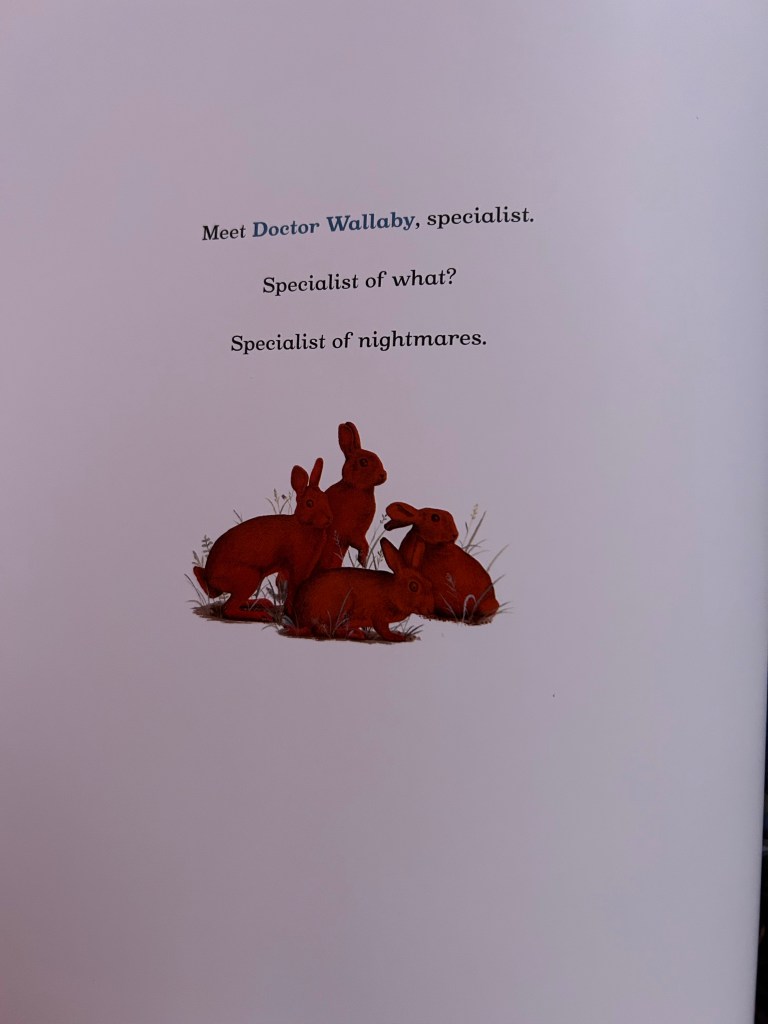 Aparuta in 2021 sub titlul original “L’isola della ombre”, cartea reuneste scrisul de exceptie al autorului de origine elvetiana Davide Cali si ilustratia Claudiei Palmarucci, castigatoarea din 2020 a premiului BolognaRagazzi Award for Nonfiction cu cartea “Marie Curie: nel paesa della scienza”. Sub motto-ul lui Carl Sagan, “Extinction is the rule. Survival is the exception”, cartea prezinta lumea animala, cu viata si provocarile ei. Oare animalele viseaza? Au cosmaruri? Ce forma au ele? Si daca un animal are aceasta problema, cui se poate el adresa? Doctorului Wallaby, desigur! Care ajutat de compagnonul lui de nadejde, Dingo, incearca sa alunge toate cosmarurile pacientilor sai. Insa diavolul tasmanian are o alta problema pentru care a venit astazi la doctor: visele sale nu sunt nici blanoase, nici fioroase. El nu viseaza deloc! Pentru ca el si visele sale au disparut pe Insula Umbrelor, acolo unde ajung poate animalele dupa ce dispar. “The place with no return from”.
